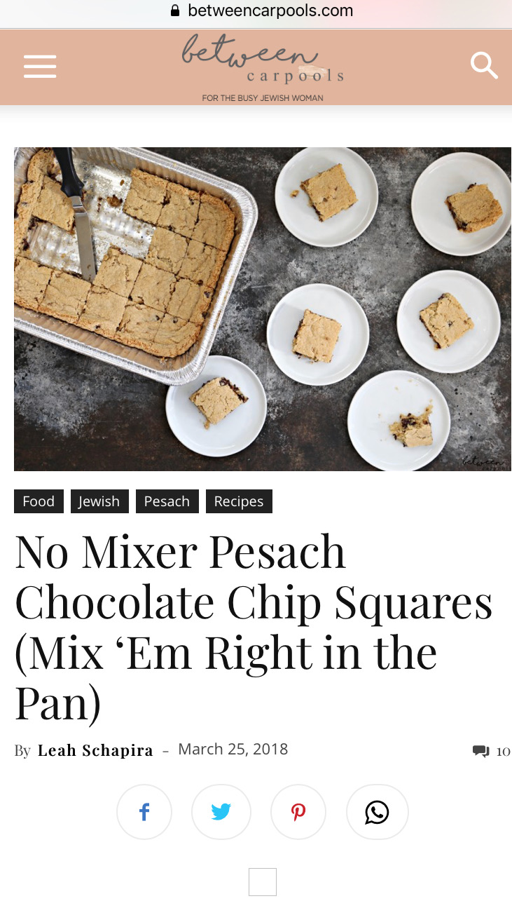 7. No Mixer Pesach Chocolate Chip Cookie Squares –